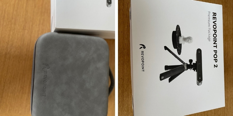 We received the Revopoint POP 2 Premium Edition, which comes in a flattering grey case containing the neatly-packed 3D scanner, turntable, and various accessories.